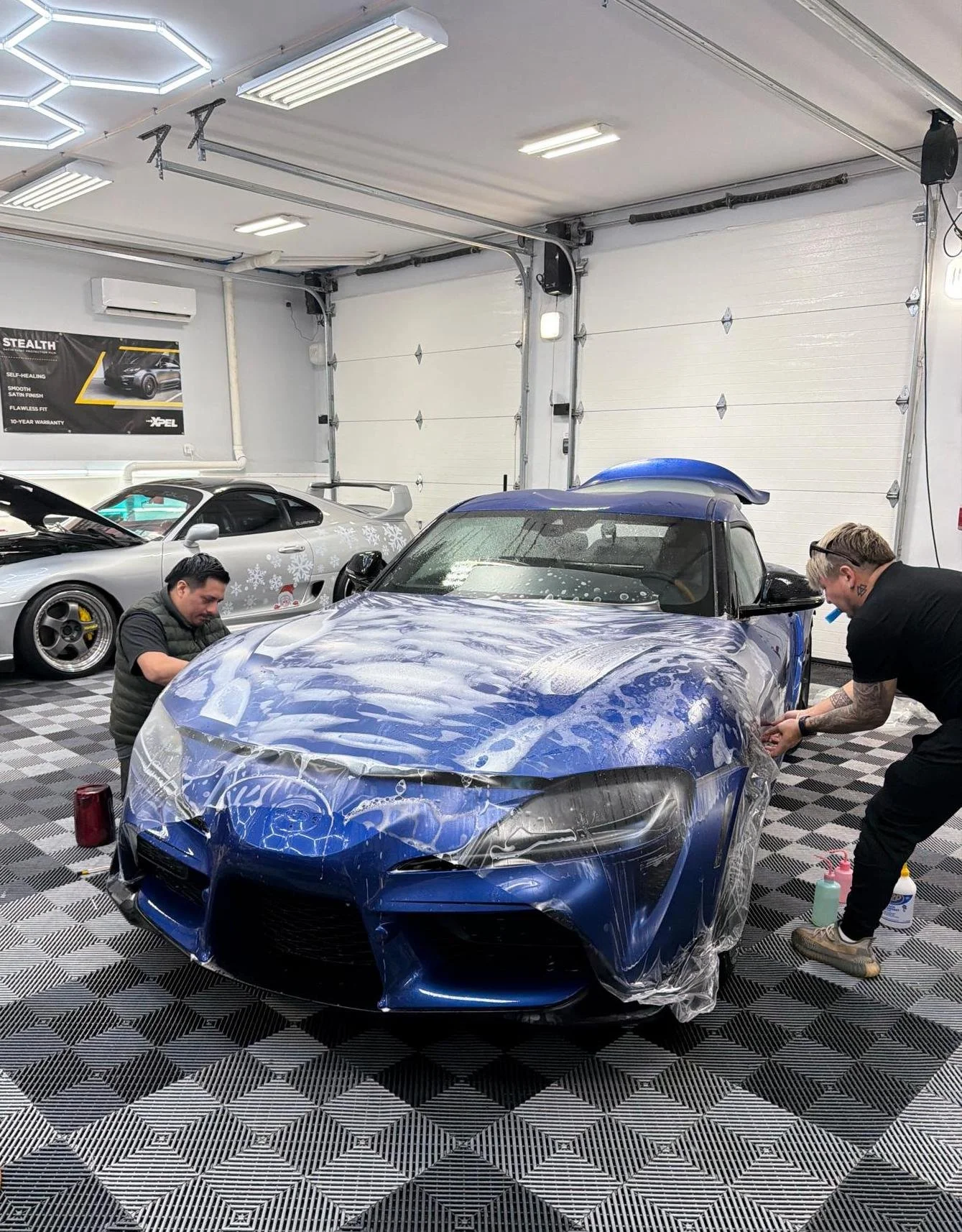 Paint Protection Film (PPF) is the invisible shield that keeps your car’s paint looking brand new — protecting against rock chips, scratches, bug splatter, and road debris.